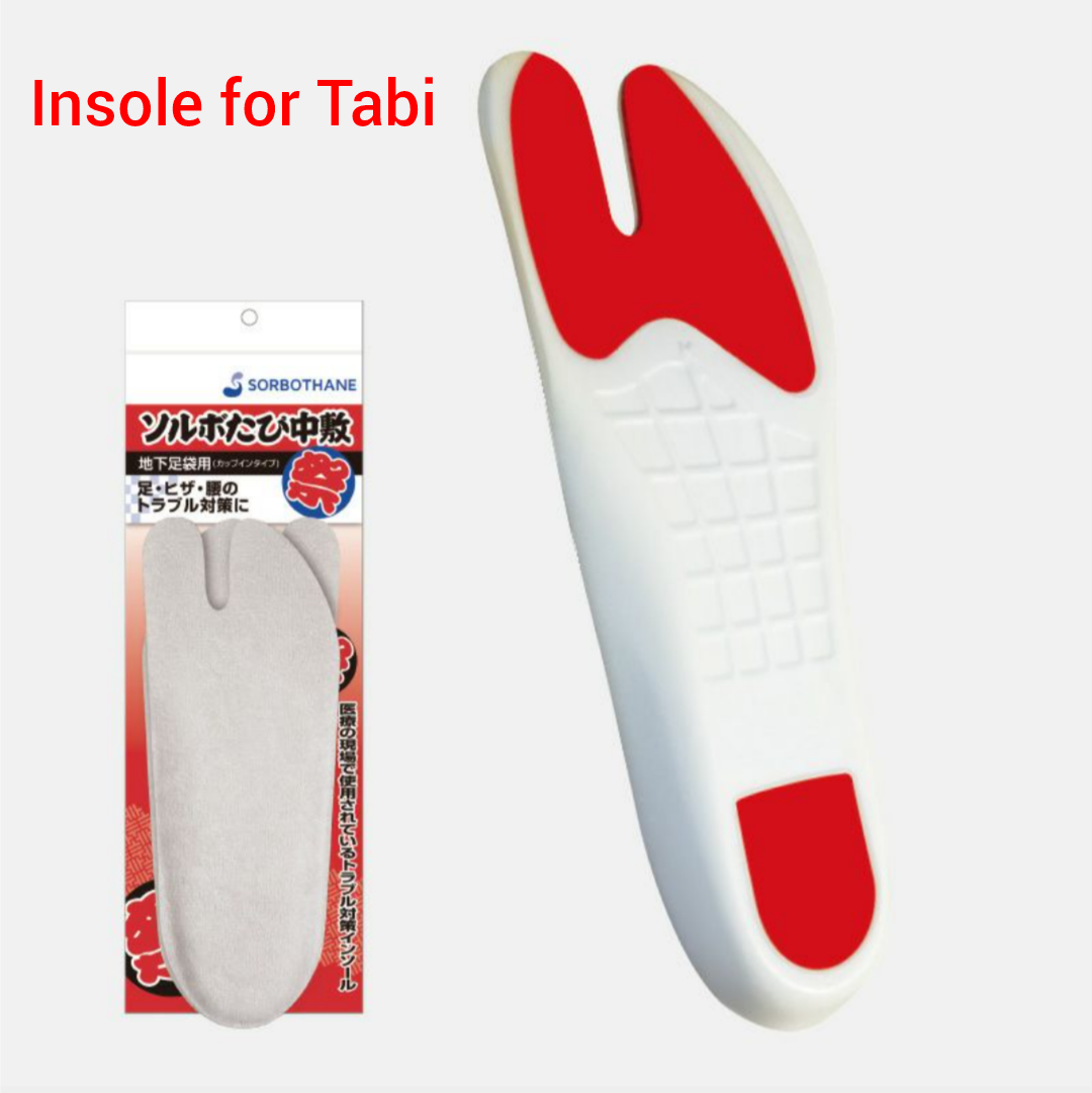 When wearing tabi at festivals and doing vigorous exercise for long periods of time, simply inserting an insole into the tabi will absorb the strong impact from the asphalt and reduce problems with your feet, knees, and hips.