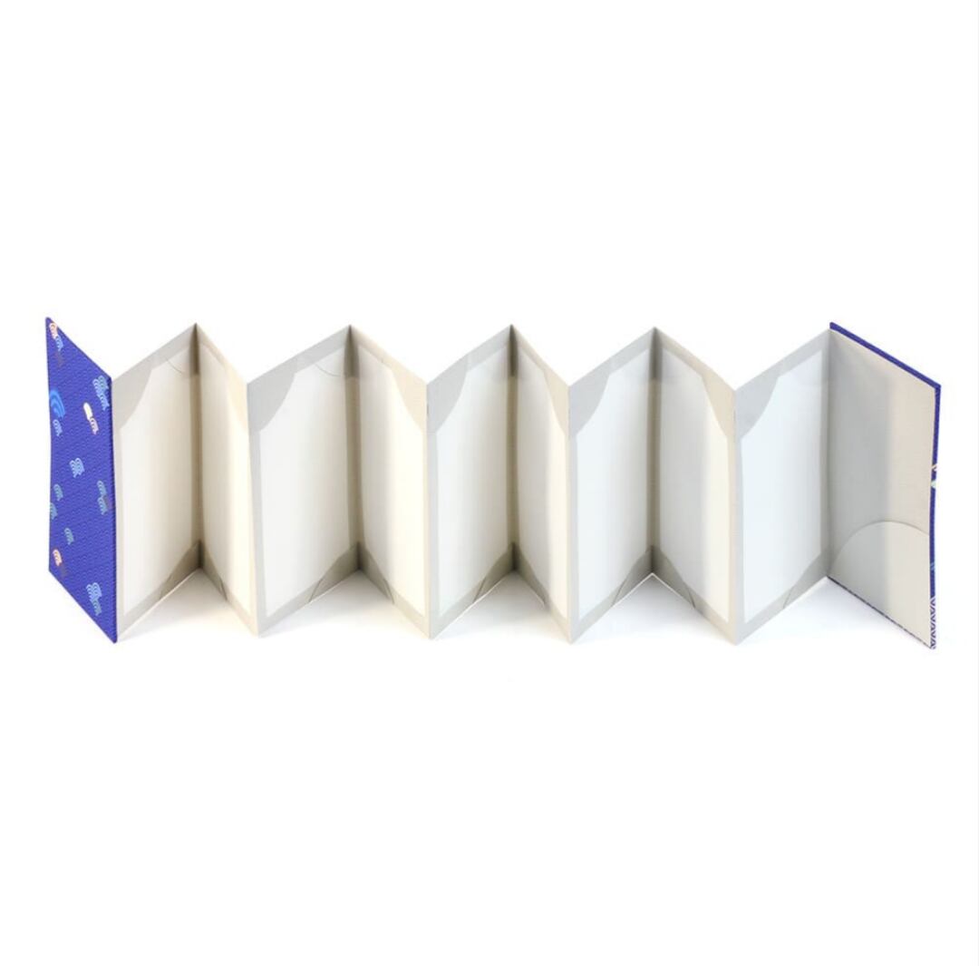This "Pre-written Goshuin (for Castle Stamp) Book" allows you to store pre-written goshuin (stamps) by inserting the four corners into the accordion-style mount. Since it's not glued, you can easily swap them out, even storing double-sized "pre-written goshuin." The back cover (both sides) features a pocket for storing admission tickets and other items, as well as an elastic band to keep the accordion-style mount closed.