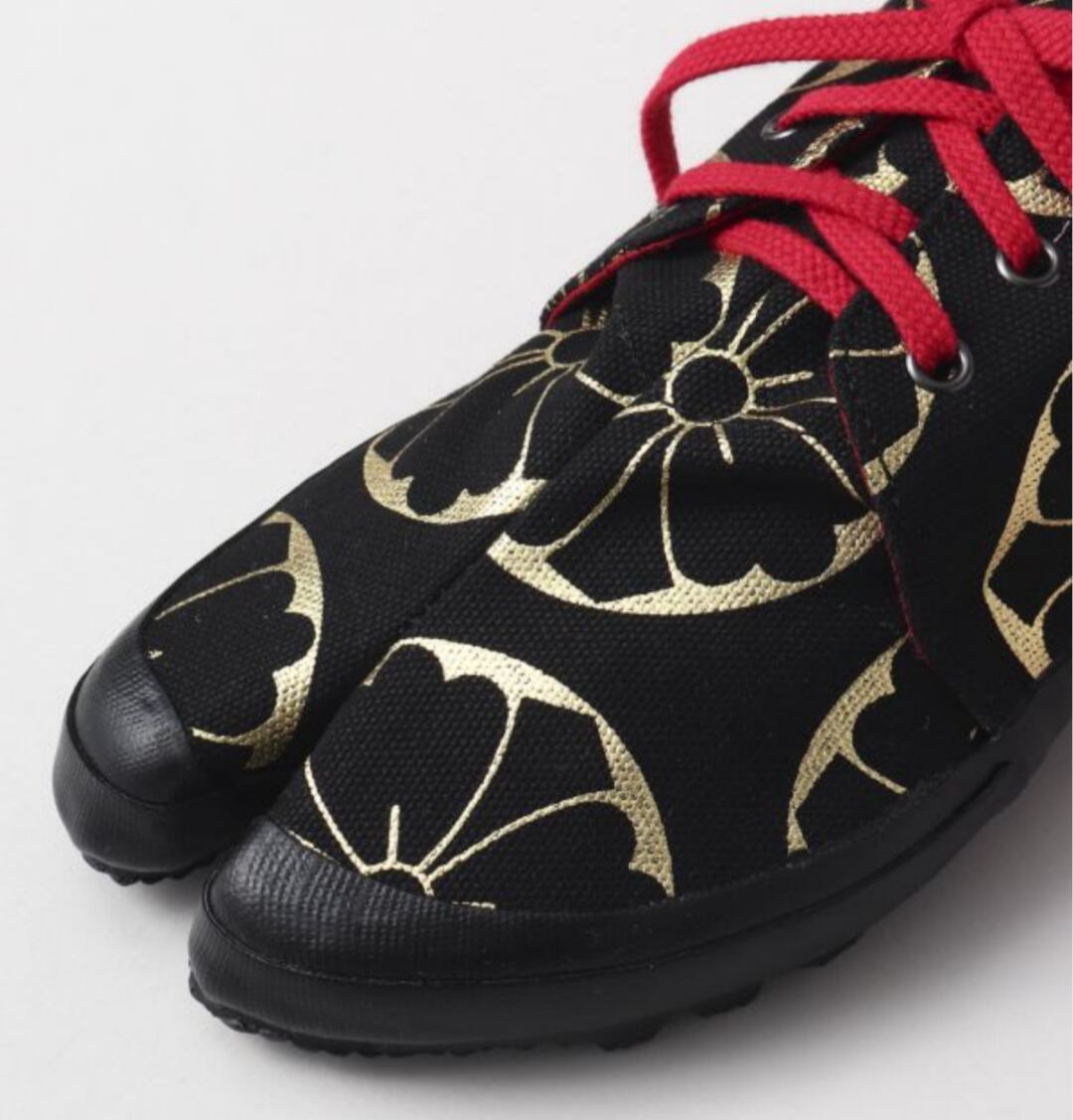 These tabi shoes feature a dazzling gold floral diamond pattern called Hanabishi. The soft sole conforms to your feet, making them extremely comfortable and easy to move in.