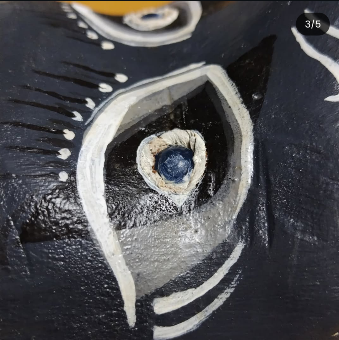 Eyes: glass beads/paper