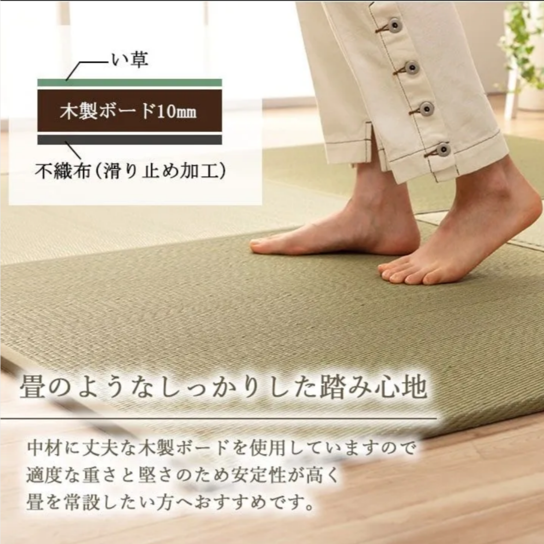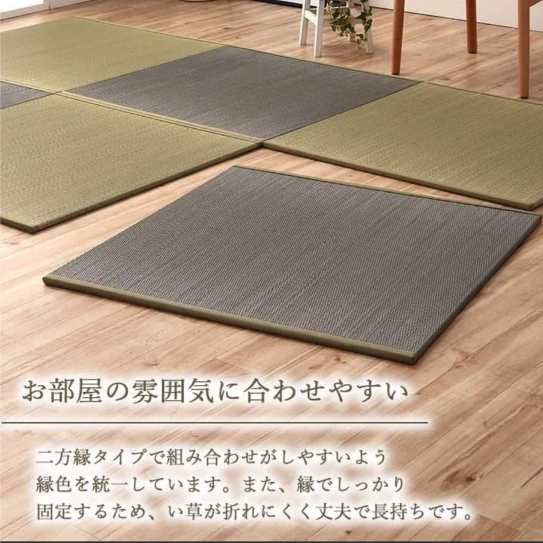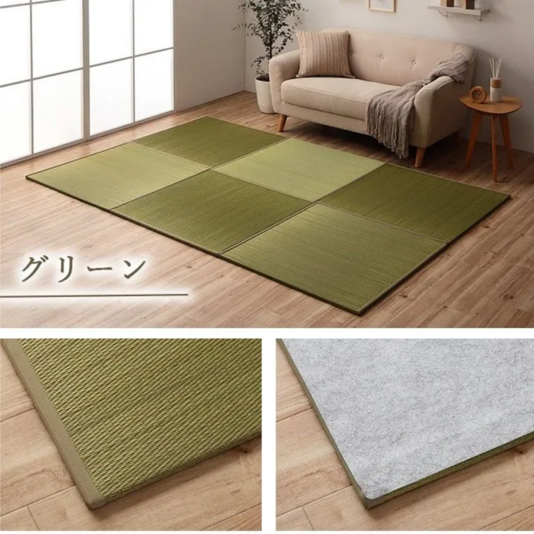 Floor tatami mats, unit tatami mats, system tatami mats, rush grass mats, made in Japan, Japanese-style rooms, compatible with flooring, lightweight, natural, easy to clean, stain-resistant, anti-slip, deodorizing, antibacterial and deodorizing, humidity control effect